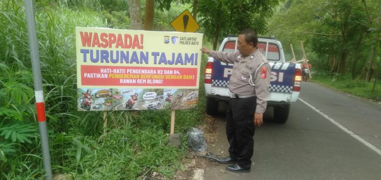 Satlantas Polres Batu Pasang Banner Peringatan, Antisipasi Titik Rawan Laka-Lantas Usai Insiden Fatal