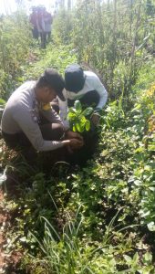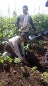 Polres Batu Cyber News – Menyambangi Warga Desa Binaannya, Bhabinkamtibmas tidak saja menyampaikan pesan – pesan kamtibmas namun Bhabinkamtibmas juga berbagi pengalaman bagaimana bercocok tanam yang baik.