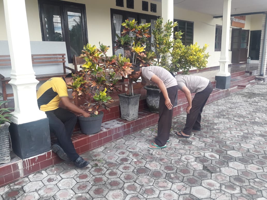 “Kegiatan ini juga dalam rangka menggiatkan pola hidup sehat peduli lingkungan dengan cara menjaga kebersihan markas serta ruang kerja antisipasi penyebaran virus Corona juga,” Ucap Kapolsek