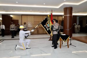 Dalam rangka tradisi peringatan hari Bhayangkara ke 75 Polda Jawa Timur gelar upacara pemuliaan nilai – nilai luhur Tribrata Pataka Polda Jatim,