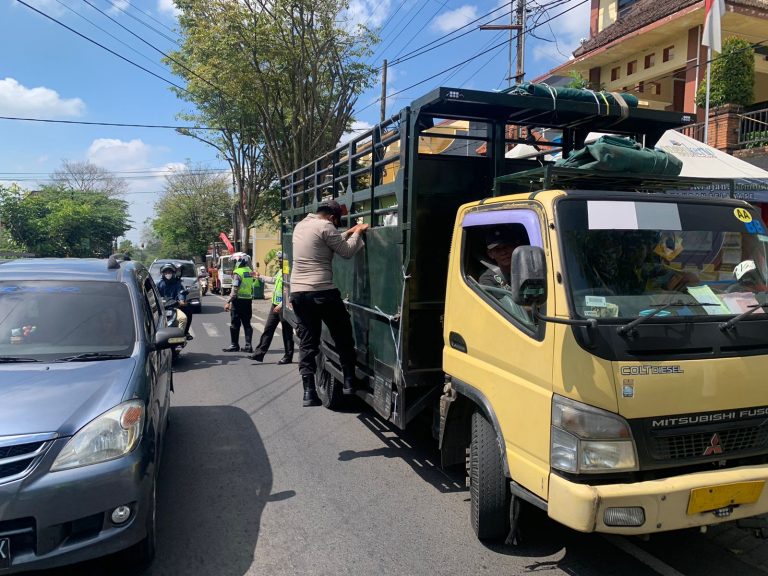 Terus Waspada Wabah PMK, Petugas Polsek Bumiaji Lakukan Pemeriksaan SKKH Pada Kendaraan Pengangkut Hewan Ternak
