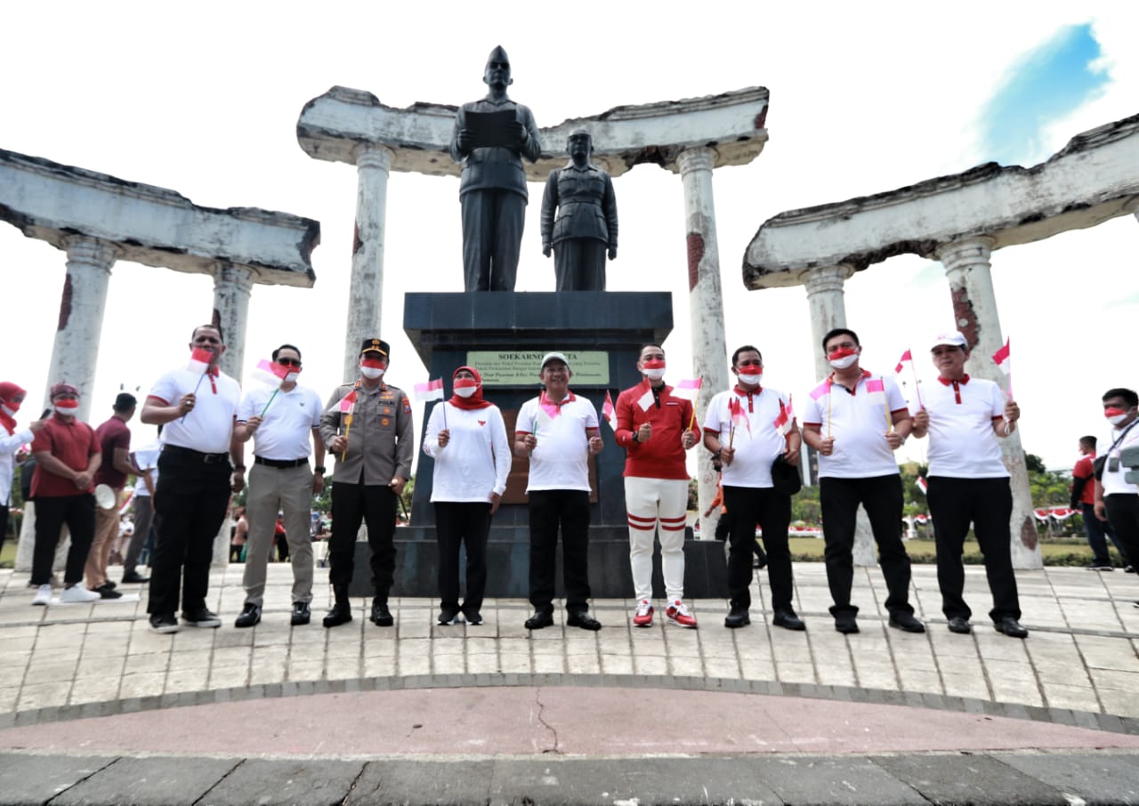 SURABAYA – Kapolda Jawa Timur Irjen Pol Nico Afinta bersama jajaran dan seluruh perwakilan Forum Koordinasi Pimpinan Daerah (Forkopimda) Jatim menghadiri Gerakan Pembagian 10 Juta Bendera Merah Putih di Gedung Negara Grahadi, Surabaya, Jawa Timur kemarin Minggu (14/8/22).