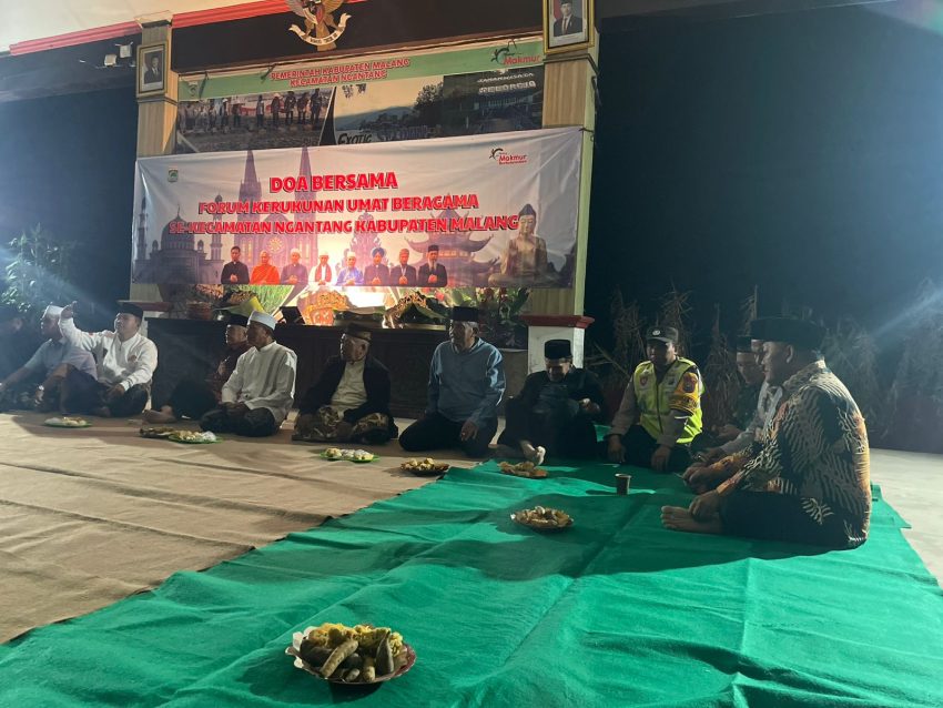 Batu, Malang – Dalam rangka memperkokoh tali silaturahmi dan kerukunan antarumat beragama, personel Polsek Ngantang Polres Batu hadir dan aktif berpartisipasi dalam kegiatan Doa Bersama yang digelar oleh Forum Kerukunan Umat Beragama (FKUB) se-Kecamatan Ngantang.
