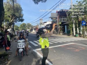Kegiatan ini dilaksanakan bersamaan dengan jam kedatangan siswa-siswi, di mana volume kendaraan di jalur tersebut biasanya mengalami peningkatan signifikan. Personel Polwan Sat Lantas Polres Batu secara sigap mengatur lalu lintas, membantu penyebrangan para pelajar, serta memastikan seluruh aktivitas berlangsung aman dan tertib. Dengan pendekatan ramah dan edukatif, para Polwan juga memberikan imbauan kepada pengendara agar selalu mematuhi rambu-rambu lalu lintas serta mengutamakan keselamatan pejalan kaki, terutama anak-anak sekolah.