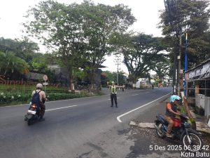 Batu – Satuan Lalu Lintas (Sat Lantas) Polres Batu terus meningkatkan pelayanan kepada masyarakat dengan melaksanakan kegiatan pengaturan arus lalu lintas di kawasan Simpang 3 Beji–Sawahan, salah satu titik jalur padat kendaraan yang menghubungkan wilayah Kota Batu dengan Kabupaten Malang. Kegiatan ini dilakukan sebagai upaya untuk menjaga kelancaran arus kendaraan sekaligus meminimalisir potensi kemacetan maupun kecelakaan lalu lintas. Jumat (05/12/2025)