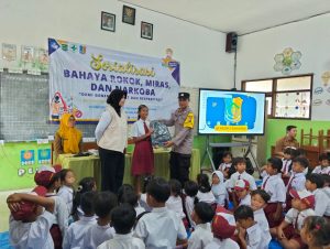 Dalam upaya memperkuat peran edukatif Polri serta mencegah munculnya perilaku menyimpang di kalangan pelajar, Anggota Polsek Ngantang melaksanakan kegiatan sosialisasi tentang bahaya rokok, minuman keras, dan narkoba kepada siswa-siswi Sekolah Dasar Negeri (SDN) 3 Banjarejo. Kegiatan yang berlangsung pada hari ini mendapat sambutan antusias dari pihak sekolah maupun para siswa yang mengikuti kegiatan dengan penuh perhatian.