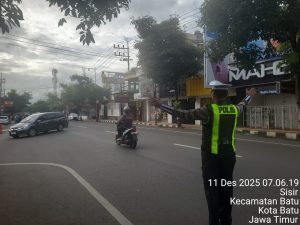Dalam rangka menjaga kelancaran arus lalu lintas serta memberikan rasa aman kepada masyarakat, Satuan Lalu Lintas (Sat Lantas) Polres Batu melaksanakan kegiatan pengaturan lalu lintas di depan Simpang 3 Masjid At-Taqwa, Kota Batu, pada Selasa pagi. Kegiatan ini dilakukan sebagai bagian dari pelayanan rutin kepada masyarakat, khususnya di kawasan yang dikenal padat kendaraan pada jam-jam sibuk.