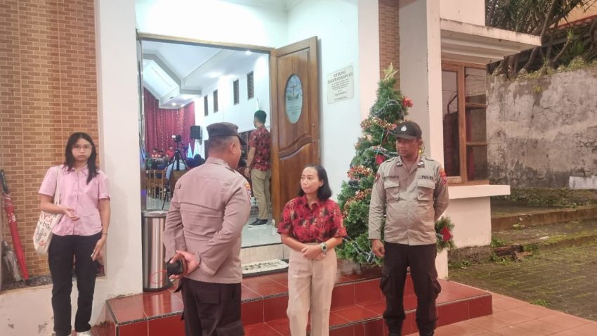 Kota Batu – Dalam rangka menjamin keamanan dan ketertiban perayaan Natal 2025, personel Kepolisian Sektor (Polsek) Junrejo, Polres Batu, melaksanakan monitoring dan pengamanan terhadap ibadah Natal yang diselenggarakan oleh Gereja Baptis Indonesia (GBI) Agape.