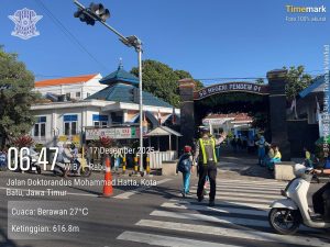 Anggota Satlantas Polres Batu kembali menunjukkan wujud nyata pelayanan prima kepada masyarakat melalui kegiatan pengaturan arus lalu lintas dan bantuan penyeberangan bagi para pelajar di depan SDN Pendem 01 Kota Batu. Kegiatan ini dilaksanakan pada jam masuk sekolah, saat volume kendaraan meningkat dan aktivitas masyarakat mulai padat.
