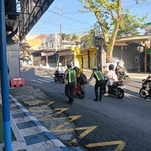 Dalam pelaksanaan tugasnya, personel Satlantas tidak hanya fokus pada pengaturan arus lalu lintas, namun juga menunjukkan kepedulian dan respons cepat terhadap situasi di lapangan. Saat mendapati sebuah kendaraan mengalami mogok tepat di area simpang, anggota Satlantas dengan sigap membantu mendorong kendaraan tersebut ke tempat yang lebih aman agar tidak mengganggu arus lalu lintas maupun membahayakan pengguna jalan lainnya.
