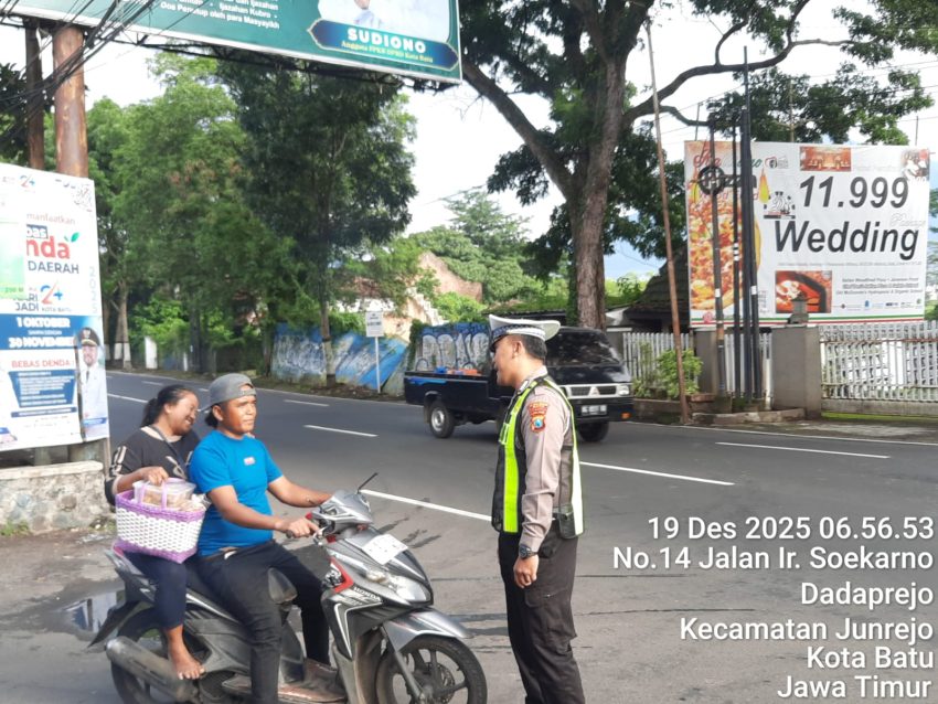 Kota Batu – Dalam upaya meningkatkan kesadaran keselamatan berkendara sekaligus menekan angka pelanggaran dan kecelakaan lalu lintas, personel Satuan Lalu Lintas (Satlantas) Polres Batu melaksanakan kegiatan penegakan hukum dengan pendekatan humanis.