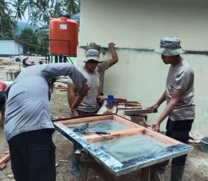 Tapanuli Selatan — Personel Brimob Batalyon C Polda Sumatera Utara bersama masyarakat setempat melaksanakan pembangunan fasilitas mandi, cuci, kakus (MCK) bagi warga terdampak banjir di Desa Tolang Julu, Kecamatan Sayur Matinggi, Kabupaten Tapanuli Selatan.