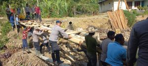 Takengon — Polri bersama masyarakat terus menunjukkan sinergi dan kepedulian dalam percepatan pemulihan pascabencana alam di Kecamatan Rusip Antara, Kabupaten Aceh Tengah.