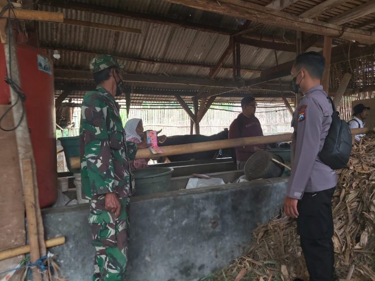 Dampingi Vaksinasi PMK Tahab II, Bhabinkmatibmas Desa Punten Imbau Peternak Jaga Kebersihan Kandang.