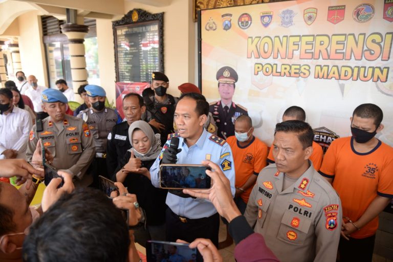 KOTA MADIUN, || Kapolres Madiun Kota AKBP Suryono, S.H., S.I.K., M.H. didampingi Kasat Narkoba dan Kasihumas telah melaksanakan Konferensi Pers pengungkapan peredaran Narkotika Gol 1 yang rencananya akan diselundupkan kedalam Lapas Pemuda Klas II Madiun, kemarin Senin (27/06). Konferensi Pers dilaksanakan di Lobby Mapolres dihadiri Kalapas Pemuda Kelas IIA Madiun Ardian Nova Christiawan, A.Md. IP,…