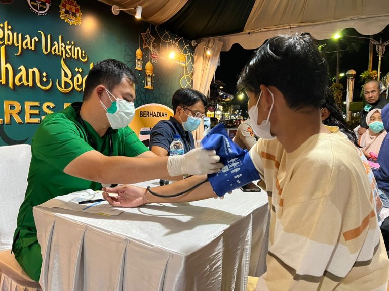 Polres Batu – Untuk mempermudah masyarakat dalam mendapatkan pelayanan Vaksin di bulan Ramadhan serta untuk mempercepat Vaksinasi Covid – 19 di Kota Batu, Polres Batu menggelar Vaksinasi malam hari yang digelar di pusat Kota Batu dan dibuka setiap hari setelah selesai Sholat Tarawih.Kamis , 8/4/2022. Percepatan vaksinasi ini juga mendukung kebijakan pemerintah yang menjadikan syarat…