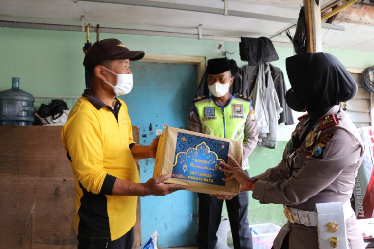 Satlantas Polres Batu Berikan Bantuan Paket Sembako Kepada Masyarakat Terdampak Bencana, Warga Ucapkan Terima Kasih