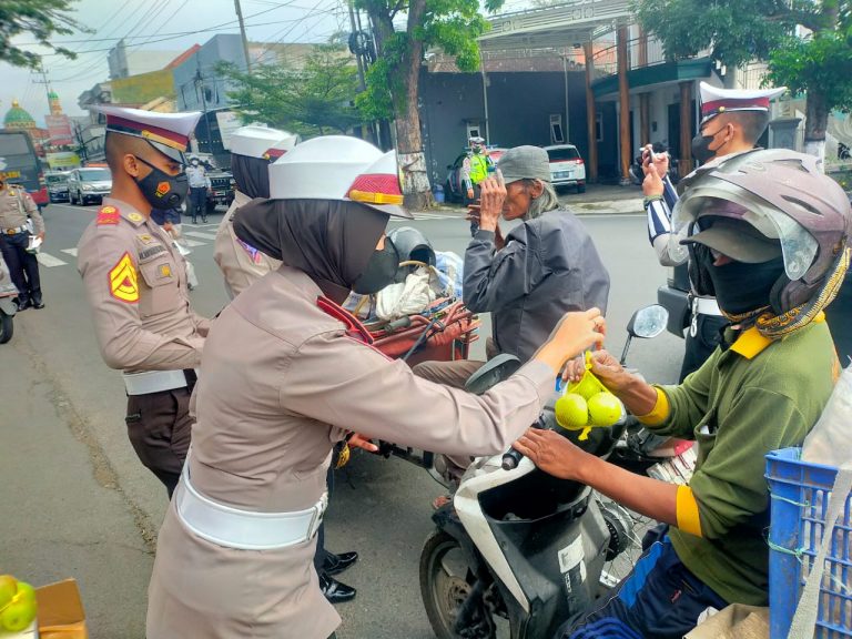 Satlantas Polres Batu Gelar Operasi Patuh Semeru 2022 Dorprize Helm, Buah Apel dan Masker