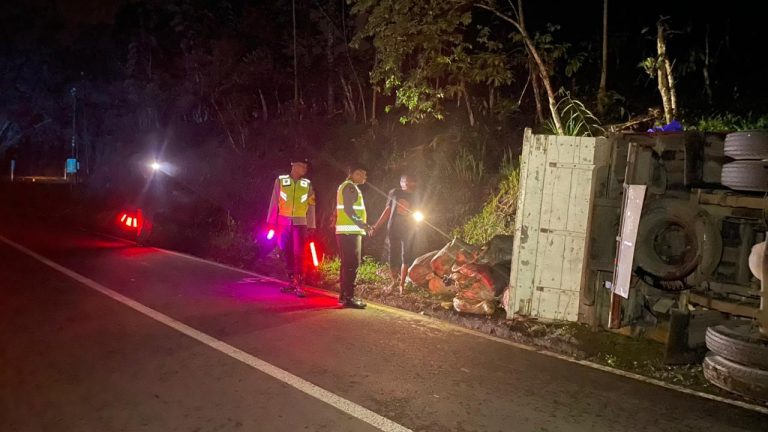 Respon Cepat Polsek Ngantang Evakuasi Truk Tergelincir Akibat Jalan Licin