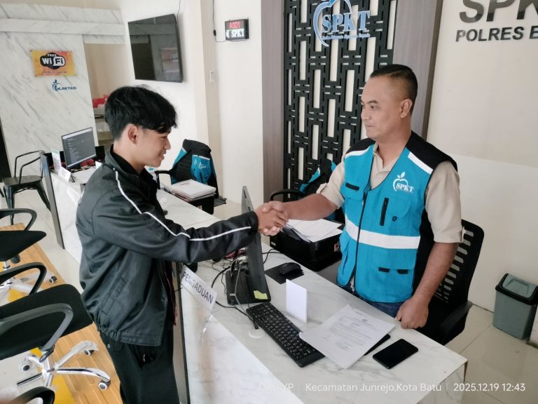 Kota Batu, Jum’at 19 Desember 2025 – Langkah pertama memasuki ruang Satuan Pelayanan Kepolisian Terpadu (SPKT) Polres Batu bukan disambut oleh kesan angker atau birokrasi kaku. Melainkan, sebuah senyum tulus dan sapaan ramah dari Bripka Agus, petugas meja informasi. “Selamat siang, silakan masuk. Ada yang bisa kami bantu?” ujarnya. Sambutan hangat ini bukanlah suatu kebetulan,…