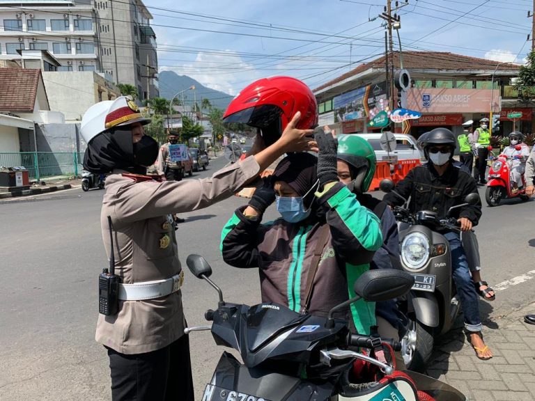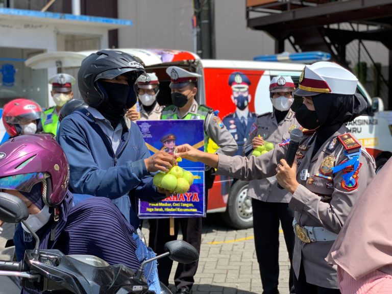 Operasi Zebra Semeru 2021, Satlantas Polres Batu Bagi Masker dan Sosialisasi Prokes